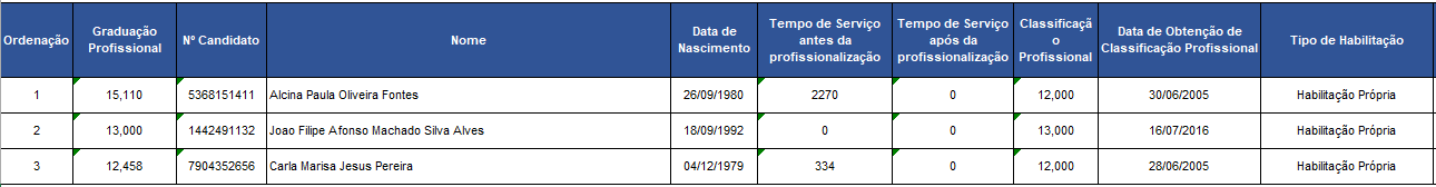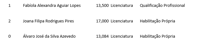 Listas de ordenação finais dos candidatos aos horários n.º 1 e 2