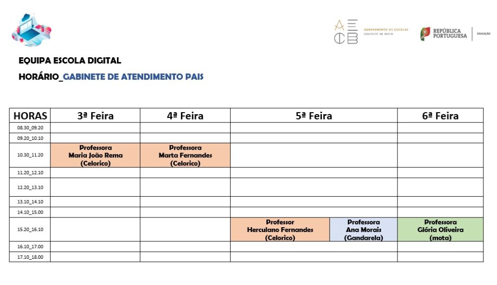 2025-2026 Horário de Atendimento aos Encarregados de Educação A equipa EDD está disponível no seguinte horário para receber os encarregados de educação para esclarecer dúvidas, criar um email, ou resolver outras situações informáticas.